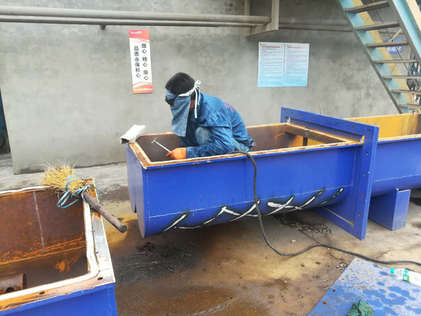 圖(2)房工正在采用KN60焊條堆焊,堆焊方法嚴(yán)格按照下面的方法